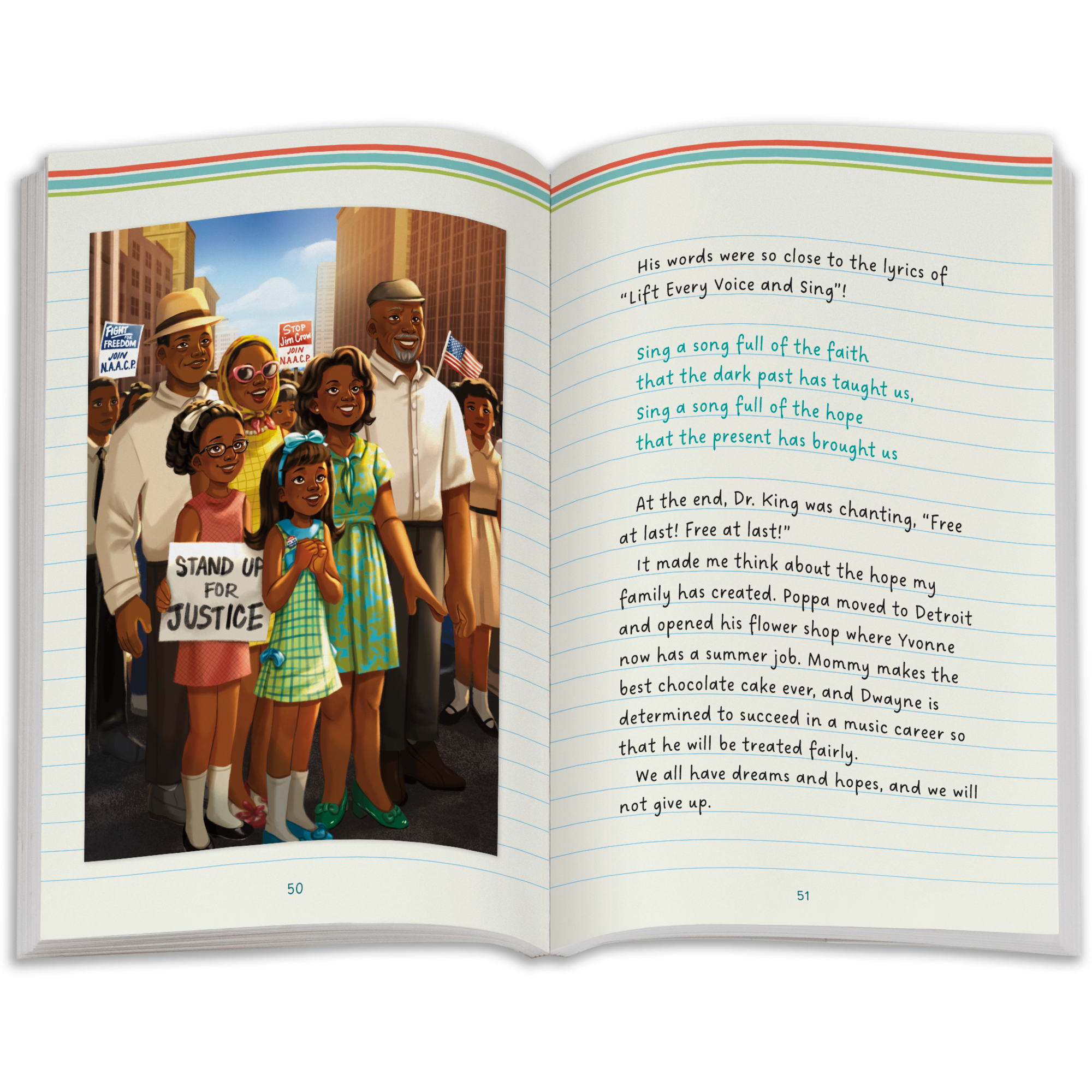 It’s 1963, and Melody’s growing up in Detroit, the hometown of Motown. She’s about to sing her first solo at church, and she wants to choose a special song. She gets inspiration from her sister, who is home from college with stories of marches and protests and making things fair. When Melody experiences discrimination for herself, she decides to stand up and speak out about civil rights, too. As her solo approaches, an unimaginable tragedy leaves her silent. Can Melody find her voice to speak up for those who can’t? 96 pages. Paperback. Author: Denise Lewis Patrick.