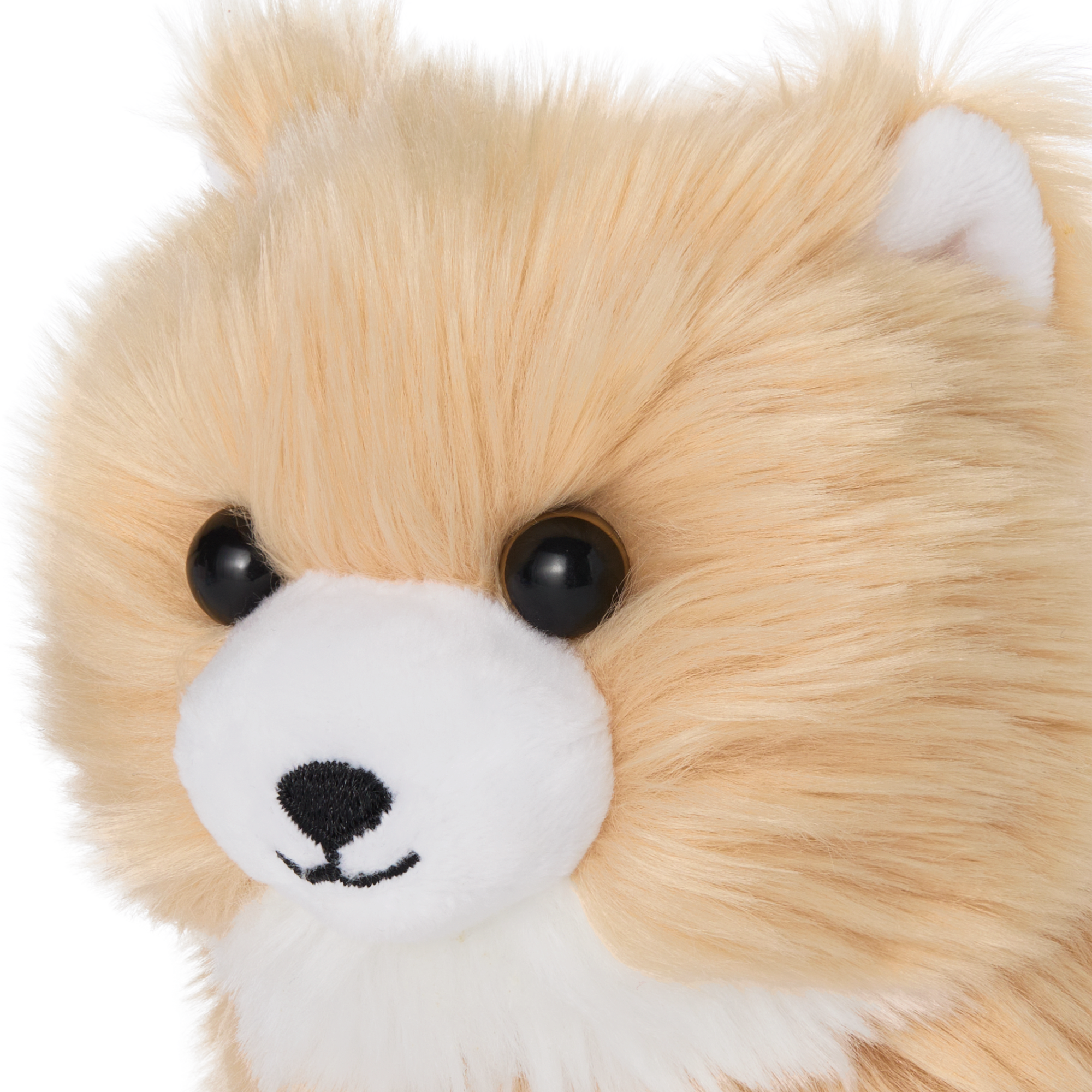 A plush Pomeranian dog with fluffy light-brown fur and a white chest