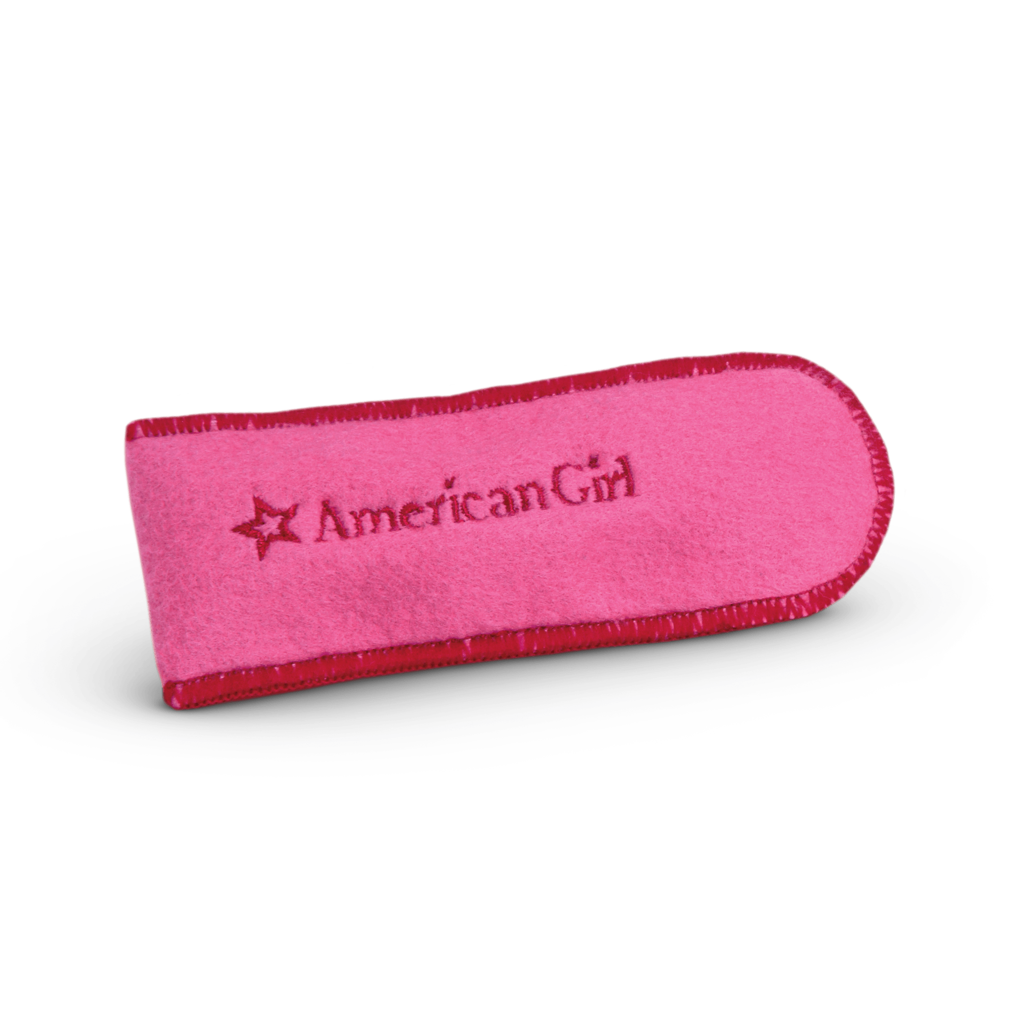 These rectangular doll glasses have raspberry-colored frames. Made to fit 18″ dolls. Includes an embroidered case for safekeeping.